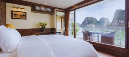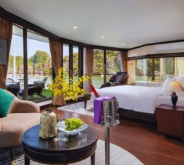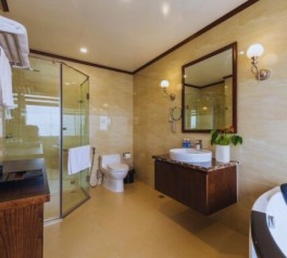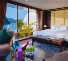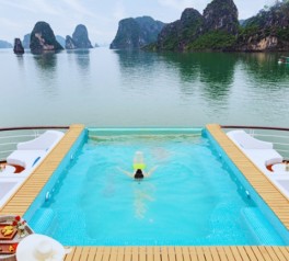 Mon Cheri Cruise Halong Bay Vietnam is a premium 5-star luxury cruise offering an exclusive journey through Halong Bay and Lan Ha Bay. Designed with 18 stylish cabins, Mon Cheri Cruise features a refined restaurant and bar, modern fitness facilities, and a soothing spa service, delivering an elegant onboard experience for travelers seeking comfort and sophistication. With a professional and attentive crew, Mon Cheri Cruise Boat Halong Bay is well-known for its exceptional service quality and personalized hospitality.