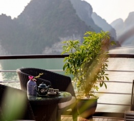17h45 PM: Returning ORCHID PREMIUM CRUISES, you can watch the magnificent sunset over the Gulf of Tonkin and passengers have a chance to view whole beautiful Ha Long Bay & Lan Ha Bay during enjoying outdoor Jacuzzi on the top deck. Onboard you may join a traditional cooking class and enjoy deluxe afternoon tea. Our chef will instruct you in the making of some Vietnam dishes. In the early evening the boat has its Happy Hour deal.