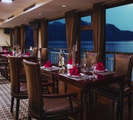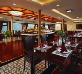 Enjoy a refined dinner featuring fresh seafood and authentic Vietnamese cuisine, served in the elegant onboard restaurant.