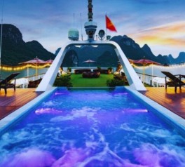 Explore the tranquil Tra Bau area, famous as a filming location for Kong: Skull Island. Guests can enjoy kayaking, swimming, or relaxing in the onboard Jacuzzi located at the front of the 4th deck.