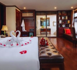 Discover the peaceful Tra Bau area, famous as a filming location for Kong: Skull Island. Guests can enjoy kayaking, swimming, or relaxing in the Jacuzzi located at the front of the 4th deck.