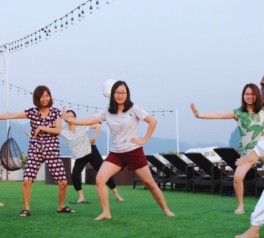 Enjoy a revitalizing Tai Chi session on the sundeck. Practicing Tai Chi among the dramatic limestone peaks of Lan Ha Bay helps relax the body, improve balance, and refresh the mind.