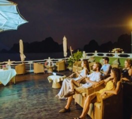 Lan Ha Bar opens for Sunset Happy Hour, offering special promotions on selected drinks with complimentary snacks. Watch the sun set over the horizon, one of the most memorable moments of a Ha Long Bay overnight cruise.