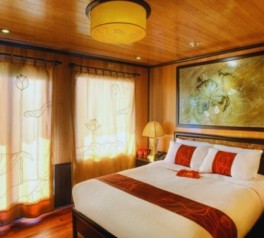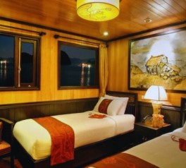 End Day 1 of your Ha Long Bay overnight cruise and relax in your cabin, surrounded by tranquil waters, limestone silhouettes, and the peaceful atmosphere of northern Vietnam.