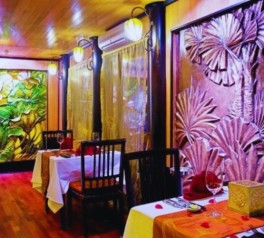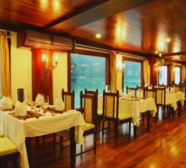 Enjoy breakfast in the dining room as the cruise prepares for a full day of exploration in Ha Long Bay.