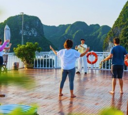 Take part in a sunrise Tai Chi lesson on the sundeck, lasting approximately 30 minutes. This traditional wellness activity allows guests to gently awaken the body while enjoying panoramic views of Ha Long Bay’s iconic karst formations.