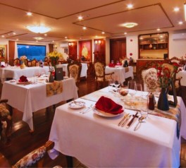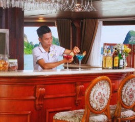 Enjoy a refined à la carte lunch at the Royal Restaurant on the main deck. As your luxury cruise sails through Bai Tu Long Bay, savor authentic Vietnamese cuisine while admiring emerald waters, dramatic limestone formations, and the peaceful beauty of this exclusive bay route.