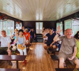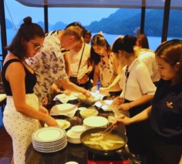 At the same time, participate in a hands-on cooking demonstration led by the onboard chef, learning how to prepare traditional Vietnamese fried spring rolls (Nem).