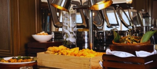 A full breakfast is served at the onboard restaurant as the cruise continues sailing through Lan Ha Bay.