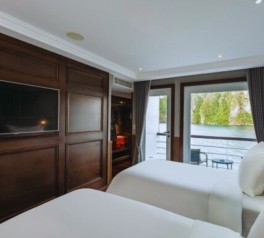 Step aboard Ambassador Signature Cruise and experience one of the most prestigious luxury cruises in northern Vietnam. Ambassador Signature Cruise Halong Bay offers a refined journey through the peaceful waters of Lan Ha Bay, combining modern elegance with world-class service. Designed as a true 5-star floating hotel, Ambassador Signature Junk Cruise Halong Bay features 39 spacious, contemporary cabins, each with a private balcony, en-suite bathroom, bathtub, full air conditioning, and premium in-cabin amenities—delivering exceptional comfort throughout the voyage.