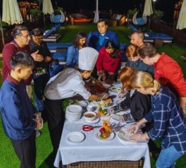 Join a cooking class led by the onboard chef to learn how to make traditional Vietnamese spring rolls.