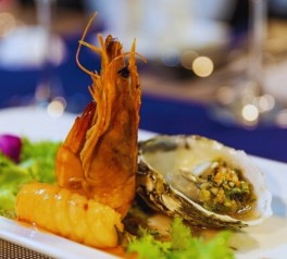 Savor a freshly prepared lunch served onboard the day boat while cruising through the scenic seascape of Ha Long Bay.