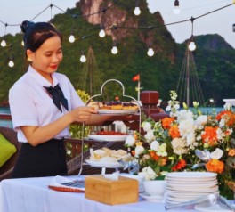 Welcome a new day onboard with a relaxing Tai Chi session on the sundeck. Tea and coffee are served as you enjoy the peaceful morning scenery of Ha Long Bay.