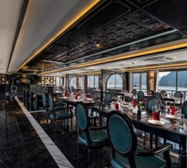 Enjoy tea, coffee, or fresh juice while watching the stunning scenery unfold. A light breakfast of pastries, tea, and coffee is served at the Lotus Restaurant as the cruise continues through tranquil waters.