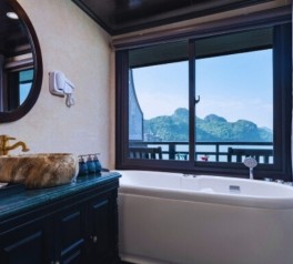After dinner, unwind with cocktails at the bar, explore the wine and cigar cellar, or enjoy the peaceful nighttime scenery of Lan Ha Bay. Optional evening activities include massage services, squid fishing, or watching movies in the restaurant.