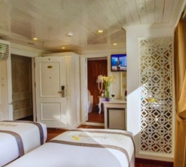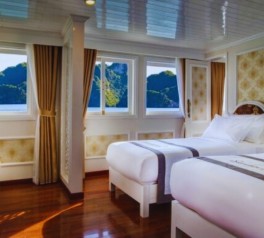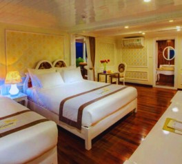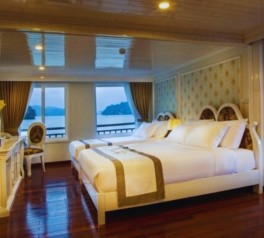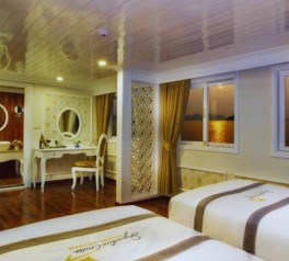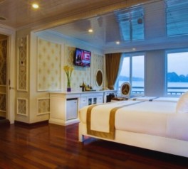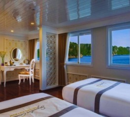 Inspired by classic French elegance and built in the style of a traditional wooden vessel, Signature Royal Cruise is widely recognized as one of the most prestigious 5-star cruises in Signature Royal Cruise Halong Bay and Signature Royal Cruise Bai Tu Long Bay. As a flagship product of Signature Royal Cruise Vietnam, the ship features only 16 spacious luxury cabins, finished in an elegant white color scheme that creates a refined and exclusive onboard ambiance.