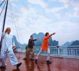 Early morning is the most beautiful time to experience Ha Long Bay. Join a gentle Tai Chi session on the sundeck to embrace the fresh air, peaceful surroundings, and soft sunrise views over the bay.