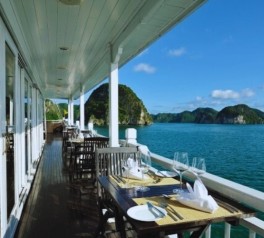 Wi-Fi is available in the restaurant and bar areas; however, connectivity may be limited due to Halong Bay’s geography.