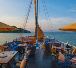 Begin your morning aboard Paradise Sails with a rejuvenating Tai Chi session on the sundeck as the sun rises over Halong Bay. A light breakfast will be served afterward in the restaurant, offering a peaceful start to the day.