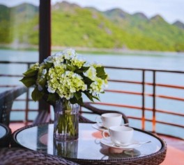 Wake up early to enjoy a peaceful sunrise over Lan Ha Bay. Start the day with an invigorating Tai Chi session on the sundeck while admiring the bay’s endless limestone scenery.