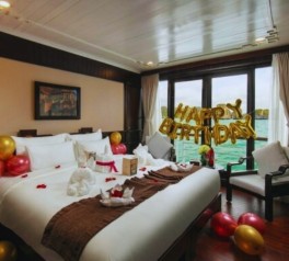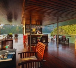 Relax on the sundeck while experiencing the peaceful nightlife of Bai Tu Long Bay. Guests may enjoy music and drinks at the bar, try night squid fishing with assistance from the crew, or join fun mini-games prepared onboard.