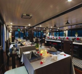 Savor a delightful dinner featuring Vietnamese specialties, freshly prepared and served at the onboard restaurant.