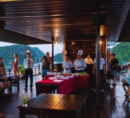 Begin a refreshing new day with a Tai Chi session on the sundeck. Breathe in the fresh sea air and enjoy the peaceful morning atmosphere of Halong Bay before breakfast.