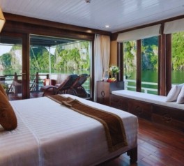 Enjoy an overnight stay onboard, surrounded by the peaceful ambiance of Halong Bay.