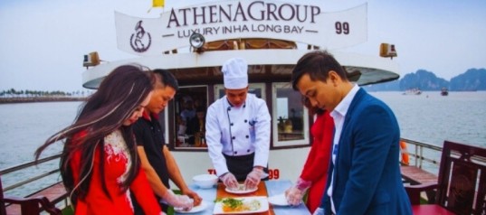 While cruising back toward the harbor, join a traditional Vietnamese cooking demonstration on the sundeck, where the chef shows how to make fresh spring rolls. Guests are also invited to enjoy Vietnamese lotus tea served with sweet candied lotus seeds, along with a cultural introduction to the traditional tea-making process.