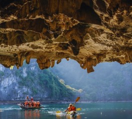 Experience the tranquility of Luon Cave by kayaking or traditional sampan boat (optional with extra charge), gliding through calm waters surrounded by towering limestone cliffs.
