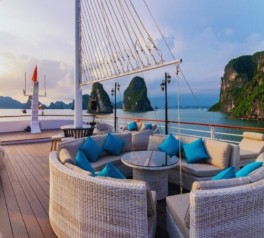 Iris Day Cruise Halong Bay is inspired by the Iris flower, a symbol of wisdom, elegance, faith, and hope. Designed as a premium Iris Day Cruise, the vessel offers a refined luxury experience for up to 99 guests, combining modern design, spacious decks, and high-quality onboard services. Guests on Iris Cruise Halong Bay can enjoy a scenic daytime journey to iconic highlights such as Sung Sot Cave and Titov Island, or choose a romantic sunset and evening cruise to admire Halong Bay under colorful lights. Iris Day Cruise Halong Bay is an ideal choice for travelers seeking a sophisticated, comfortable, and memorable luxury day cruise experience.