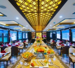 Return to the cruise for a relaxing Sunset Party featuring Vietnamese tea, coffee, fresh fruit, and light snacks. Enjoy the scenery from the sundeck or unwind in the Jacuzzi as the boat passes through the picturesque Hoa Cuong area.