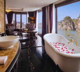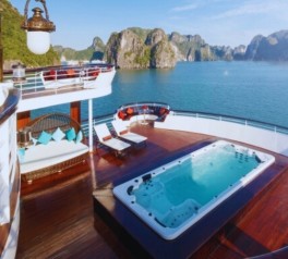 What sets Ambassador Cruise Lan Ha Bay apart are its distinctive highlights: a Michelin-inspired menu with diverse options, world-class amenities, the only outdoor jacuzzi among Halong Bay cruises, elegant live music performances, and the attentive service of professional butlers. Confidently standing as a top-tier luxury cruise, Ambassador Cruise guarantees that every moment spent in Halong Bay will be nothing short of extraordinary.