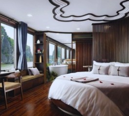 13:00 – Savor a freshly prepared lunch in the elegant onboard restaurant as the cruise begins its journey through the stunning landscapes of Ha Long Bay and Lan Ha Bay—one of the New Seven Natural Wonders of the World.