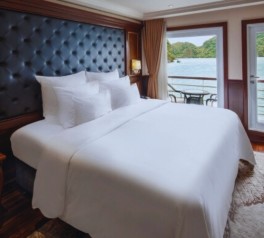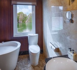 Return to the ship for a hearty breakfast at Le Marin Restaurant while sailing past iconic landmarks such as Thien Cung Cave, Dau Go Cave, and Fighting Cock Islet.