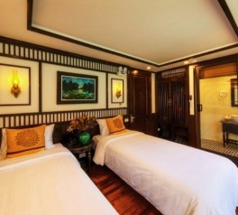 Blending traditional Vietnamese charm with a warm, modern design, this 4-star boutique vessel features 14 elegant cabins equipped with premium amenities to ensure ultimate comfort and relaxation.