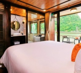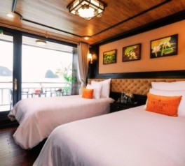 Victory Star Cruise embodies the legendary beauty of Halong Bay, blending traditional Vietnamese heritage with the elegance of modern design. Inspired by the ancient junks that once sailed the bay, this remarkable cruise offers an unforgettable journey where tradition meets sophistication. With 32 spacious cabins across four decks, Victory Star features first-class amenities including a fine-dining restaurant, stylish bar, expansive sundeck, and rejuvenating spa. Indulge in exquisite onboard cuisine, relax with a soothing massage, or simply unwind on the sundeck with a refreshing drink as you admire the breathtaking scenery. Every moment aboard the Victory Star Cruise promises comfort, elegance, and pure enjoyment.