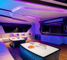 What truly sets this superyacht apart is its world-class range of facilities, including a saltwater infinity pool, golf simulator, gym and yoga studio, conference room, wine and cigar lounge, mini library, and kids’ club. Every detail is crafted to offer the pinnacle of exclusivity, comfort, and elegance. Step aboard and immerse yourself in an extraordinary floating world of leisure and style with La Siesta’s Essence Grand Superyacht.