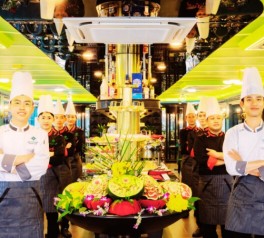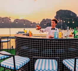 Return to the cruise for the Sunset Party, where Vietnamese tea, coffee, tropical fruits, and light snacks are served. Relax on the sundeck or in the Jacuzzi as the cruise glides past the beautiful Hoa Cuong area.