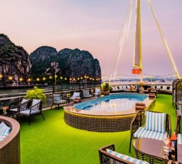Launched in August 2023, Amethyst Day Cruise Halong Bay is an exceptional 5-star day cruise offering a classic journey through Halong Bay. With its modern design and fully equipped facilities, Amethyst Cruise Halong Bay sets a new standard for luxury day trips. The ship proudly features the first-ever sundeck lounge on a Halong Bay day cruise, giving guests an elegant space to relax and admire the stunning views. Travelers often refer to it as Amethyst Day Cruise Halong or simply Amethyst Day Cruise, highlighting its reputation as one of the most sought-after options for premium day trips.