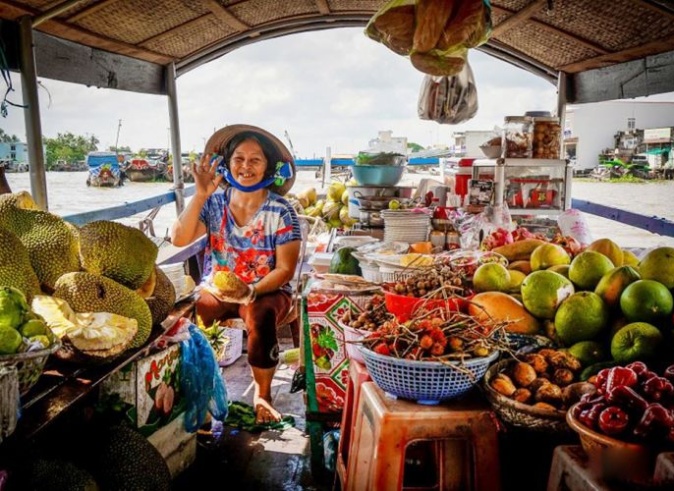 Wake up at dawn to make the most of the bustling Long Xuyen floating market, a spectacular hub of commercial exchange. You will witness hundreds of boats stacked with various products and fruits, engaging in lively trade between the traveling merchants on each boat. Floating restaurants abound, offering soups and noodles as they move from boat to boat.