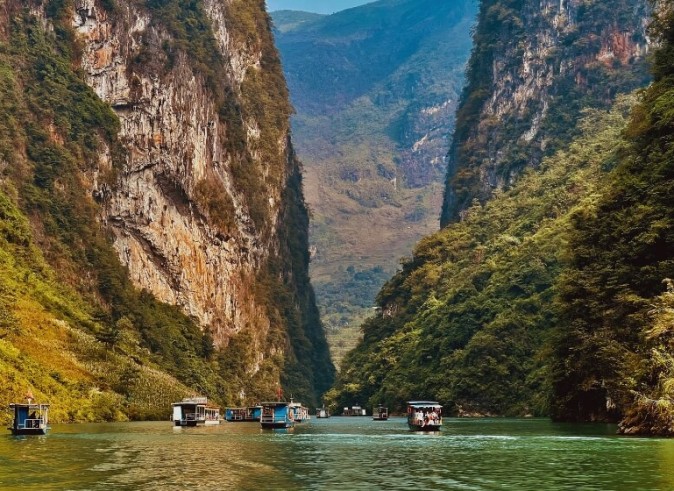 Enjoy a relaxing boat cruise on the Nho Que River, passing through the spectacular Tu San Canyon, the deepest canyon in Southeast Asia. Surrounded by towering cliffs and pristine nature, this peaceful journey offers a unique perspective of the region’s geological formations and is one of the most memorable activities in a Ha Giang Loop tour.