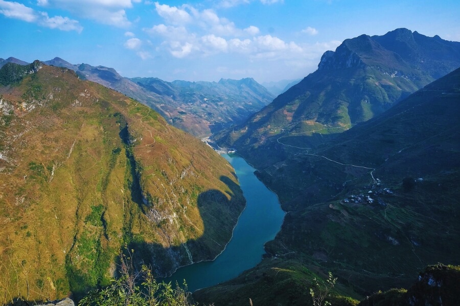 Upon arrival at Ma Pi Leng Pass, stop at panoramic viewpoints to admire the majestic scenery and capture photos of this iconic destination. From here, descend toward the emerald-green Nho Que River, a natural highlight of any Ha Giang travel experience.
