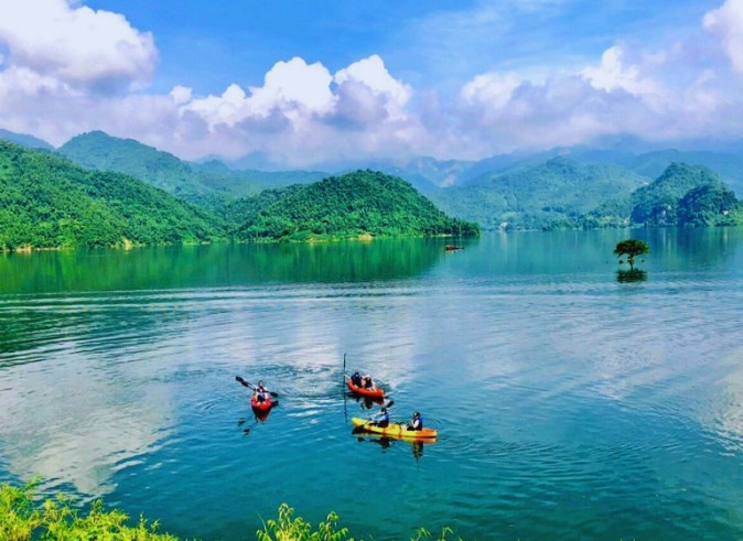 Enjoy a relaxing Ba Khan Lake boat trip, often called the “mini Ha Long Bay in Mai Chau”, a must-do experience in any Mai Chau itinerary: