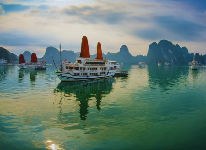 Stay overnight on your Halong Bay luxury cruise, a unique experience surrounded by peaceful waters and stunning natural scenery.