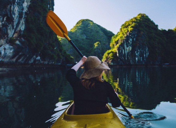 Explore the serene Luon Cave by kayak or traditional bamboo boat