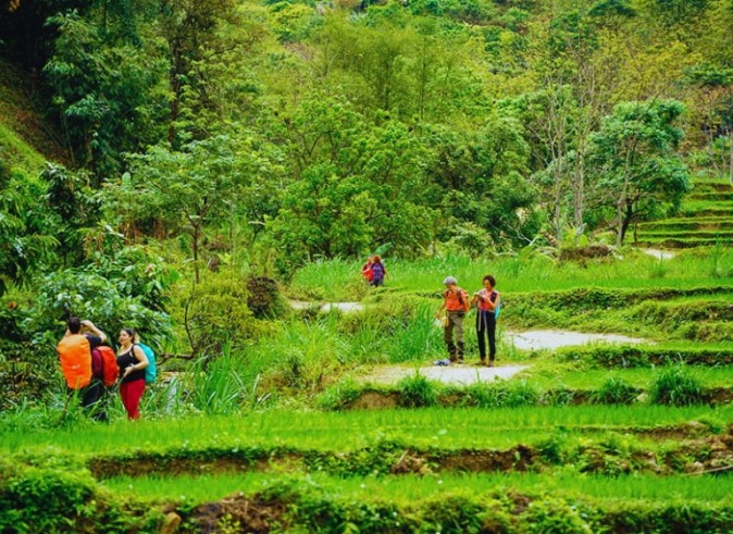 Walk through scenic rice terraces, corn fields, and traditional houses