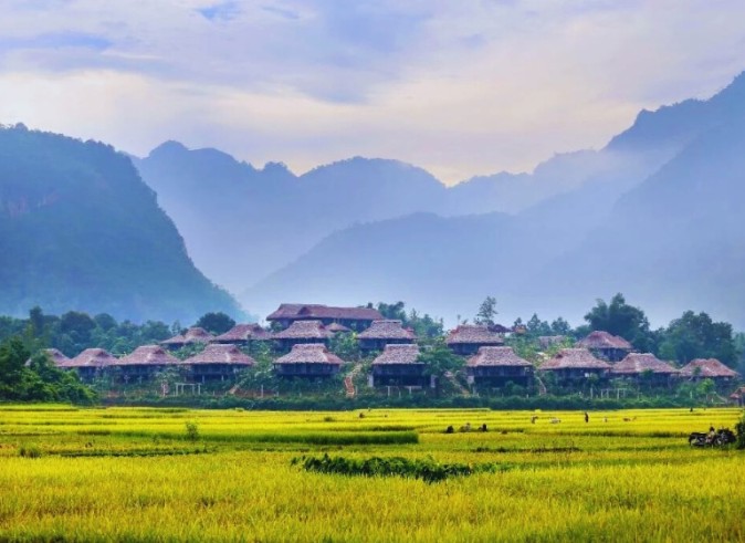 Start your day with breakfast at your resort in Mai Chau Valley, one of the most peaceful destinations in Northern Vietnam, known for its rice fields, mountains, and ethnic culture.