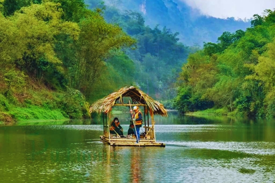 Enjoy a relaxing bamboo rafting journey on Cham Stream